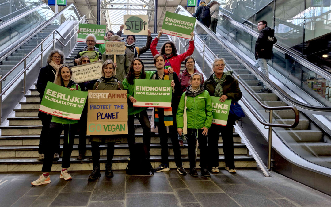 De Eindhovense Milieudefensie-afdeling heeft meegeholpen aan de organisatie van de Klimaatmars op 26 oktober 2025. Een lid van onze groep was distributiepunt voor promotiemateriaal voor Eindhoven en omgeving. Er zijn 90 posters, 500 flyers en ca 140 stickers weggezet. Verder was er vanuit de Eindhovense groep een samenreis-evenement opgezet. Het collectieve kreeg de vorm van een groepsfoto op de trap naar het treinperron. En uiteraard zijn de nodige mensen vanuit onze regio individueel naar de demonstratie gereisd.